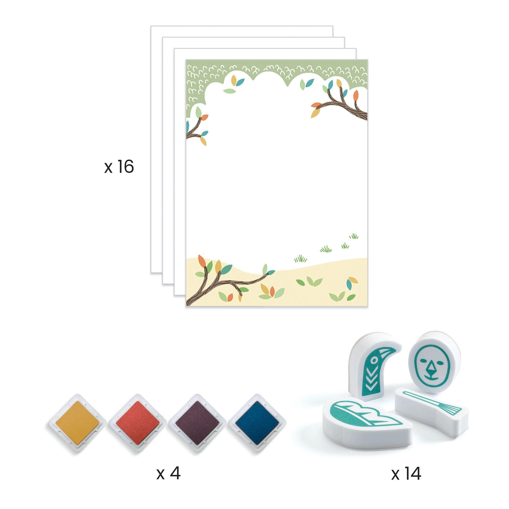 Ontdek de wereld van stempels met de set Verrassende Dieren van het merk Djeco. Deze set bevat: