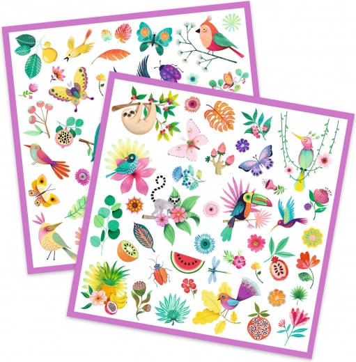 Ontdek de kleurrijke wereld van een exotisch paradijs met deze geweldige stickers van het merk DJECO: