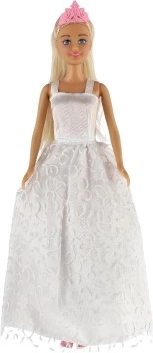 Gedetailleerde bal-/bruidsjurk met verfijnde patronen en een kroon geven de pop een sprookjesachtige uitstraling.