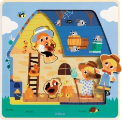 Deze hoogwaardige kinderpuzzel bestaat uit drie kleurgecodeerde lagen die kinderen stap voor stap door de wereld van de boerderij leiden. Grote en stevige stukken stimuleren de fijne motoriek, geduld en logisch denken. Dankzij de overzichtelijke gelaagdheid leren kinderen eenvoudig vormen en kleuren herkennen.