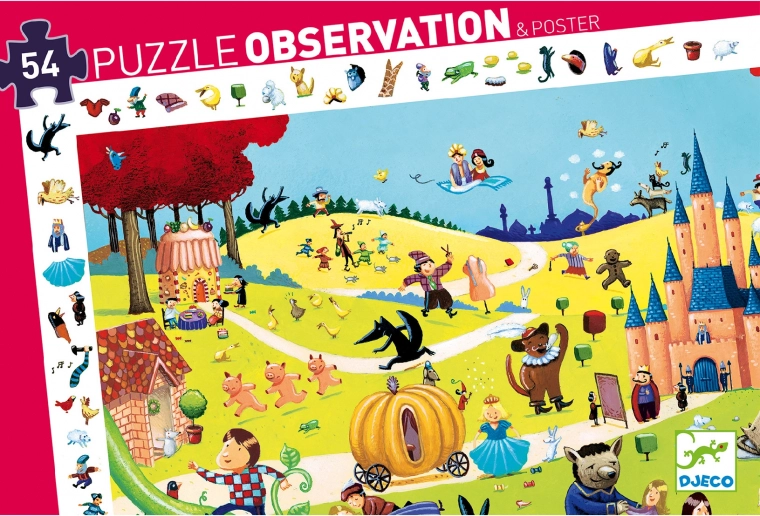 Ga op een sprookjesachtige reis met deze prachtige zoekpuzzel van DJECO. Terwijl je de puzzel legt, kun je verschillende elementen en personages vinden die verborgen zijn in het prachtig geïllustreerde ontwerp.