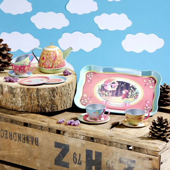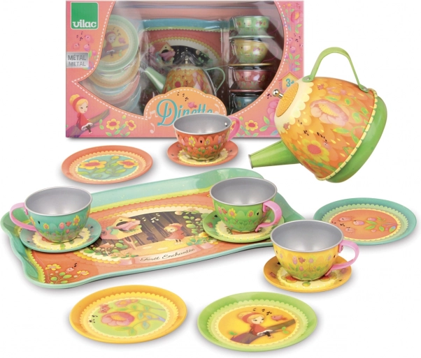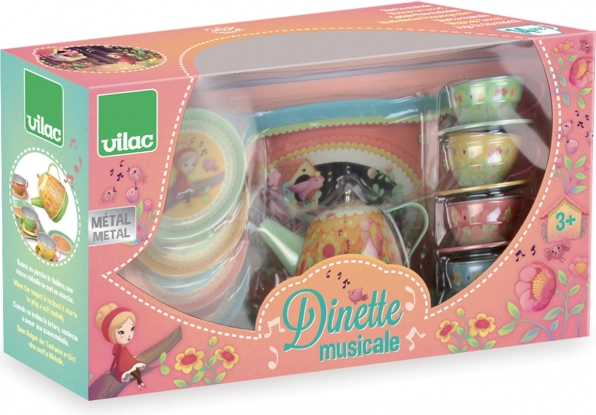 Een theekransje organiseren was nog nooit zo magisch als met de Vilac Musical theeset. Deze metalen set valt op door de sprookjesachtige illustraties van het thema "magisch bos" en het unieke muzikale element. Wanneer je het theepotje kantelt, speelt er een lieve melodie die het spel nog betoverender maakt.