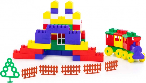 De bouwset bevat een brede selectie kleurrijke blokken die de creativiteit van kinderen stimuleren.