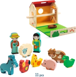 Ontdek de betoverende houten boerderij van Djeco, ideaal voor jonge kinderen vanaf 18 maanden. Deze draagbare set combineert hout en stevig vilt voor een lichte maar stabiele constructie. Kinderen genieten van een openklapbare boerderij met kippenhok en stal, inclusief een uitschuifbare glijbaan en 9 schattige figuurtjes. Na het spelen kan alles eenvoudig in de boerderij worden opgeborgen en dankzij het handvat neem je haar overal mee naartoe.