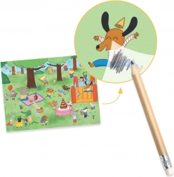 De set met wrijfplaatjes Feestjes van DJECO brengt creativiteit en plezier in de kinderwereld. Hij is uitgerust met diverse illustraties waarmee kinderen hun creatieve ideeën op papier kunnen overbrengen. Ideaal voor koele avonden of regenachtige dagen waarop kleine kunstenaars vermaakt willen worden: