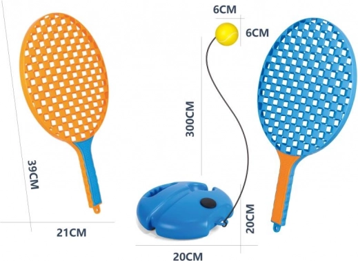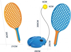 De set bevat 2 lichte rackets, zodat je ook met z’n tweeën kunt spelen. De trainer is ideaal voor kinderen vanaf 3 jaar, maar zal ook volwassenen plezieren bij ontspannen tikspelletjes in de tuin, op het speelveld of op vakantie.