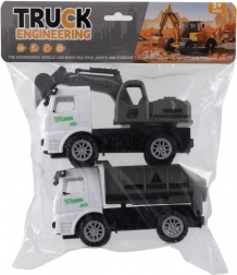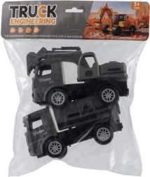 Deze coole set bouwvoertuigen zal elke kleine bouwer blij maken. Bevat 2 kunststof voertuigen van 15 cm met vliegwiel-aandrijving – gewoon aanduwen en loslaten, en de voertuigen rijden vooruit.