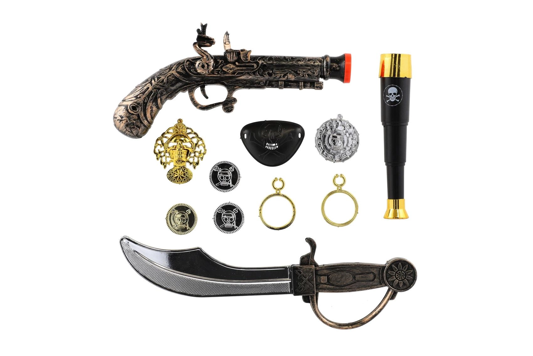 Maak je klaar voor avontuur op volle zee met deze geweldige piratenset, ideaal voor alle jonge piratenliefhebbers. Deze set bevat alles wat je kind nodig heeft om zich een echte piraat te voelen:
