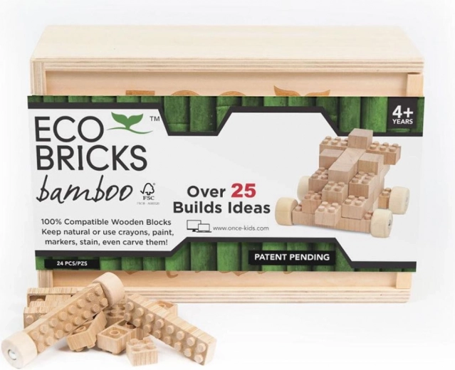Klein, maar vol mogelijkheden! Deze houten bouwpakket bevat 24 gelkleurde delen van verschillende vormen, waarmee kinderen alles kunnen bouwen volgens hun eigen fantasie.
