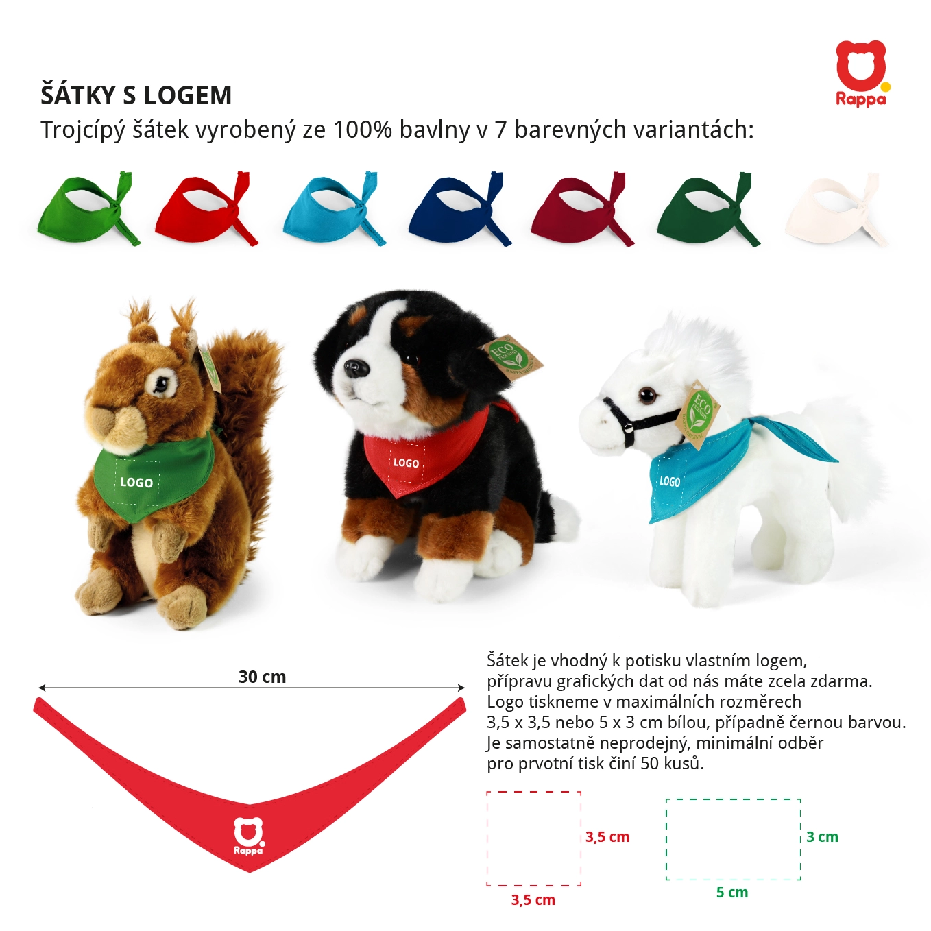 Driehoekig model met lange uiteinden voor eenvoudig strikken rond de hals of het hoofd. Geeft de knuffel persoonlijkheid en een uniforme look voor de collectie.