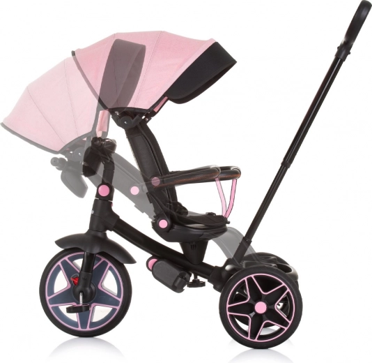 Driewieler Chipolino Derby 2-in-1 Flamingo: Banden met hoog draagvermogen, draaibare zitting, veiligheidsgordels en muziekbox.