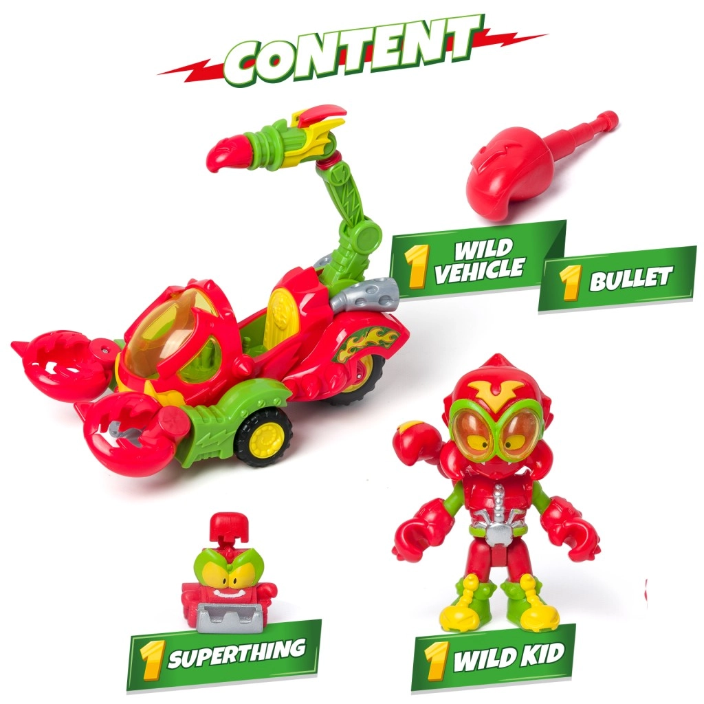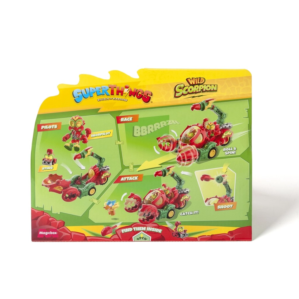 Ontketen de volle kracht van de schorpioen met de exclusieve Kid en de SuperThing, die achter het stuur kunnen plaatsnemen. De schorpioen heeft scharen die tegenstanders kunnen grijpen en draaien tijdens het bewegen. Bovendien kun je helden wegschieten met zijn krachtige angel.