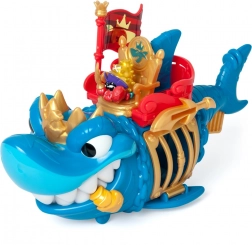 Geniet van de verfijnde details van de goud-blauwe haai met troon en de piratenkapitein, die klaar is voor elk avontuur.