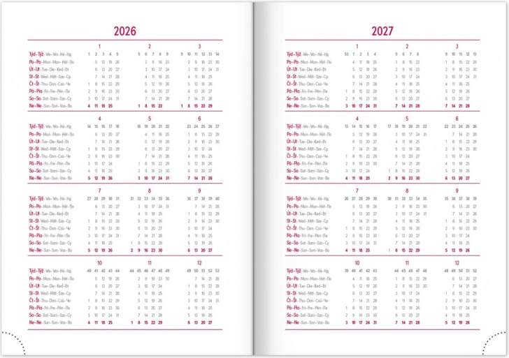 Deze agenda biedt uitgebreide functies die het plannen van uw tijd in meerdere talen gemakkelijker maken.