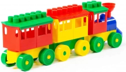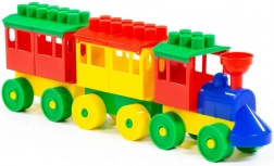 Kleurrijke plastic treinset is ideaal voor kleine kinderen vanaf 3 jaar. De set bevat een locomotief en twee wagons, waardoor kinderen hun creativiteit en fijne motoriek kunnen ontwikkelen.