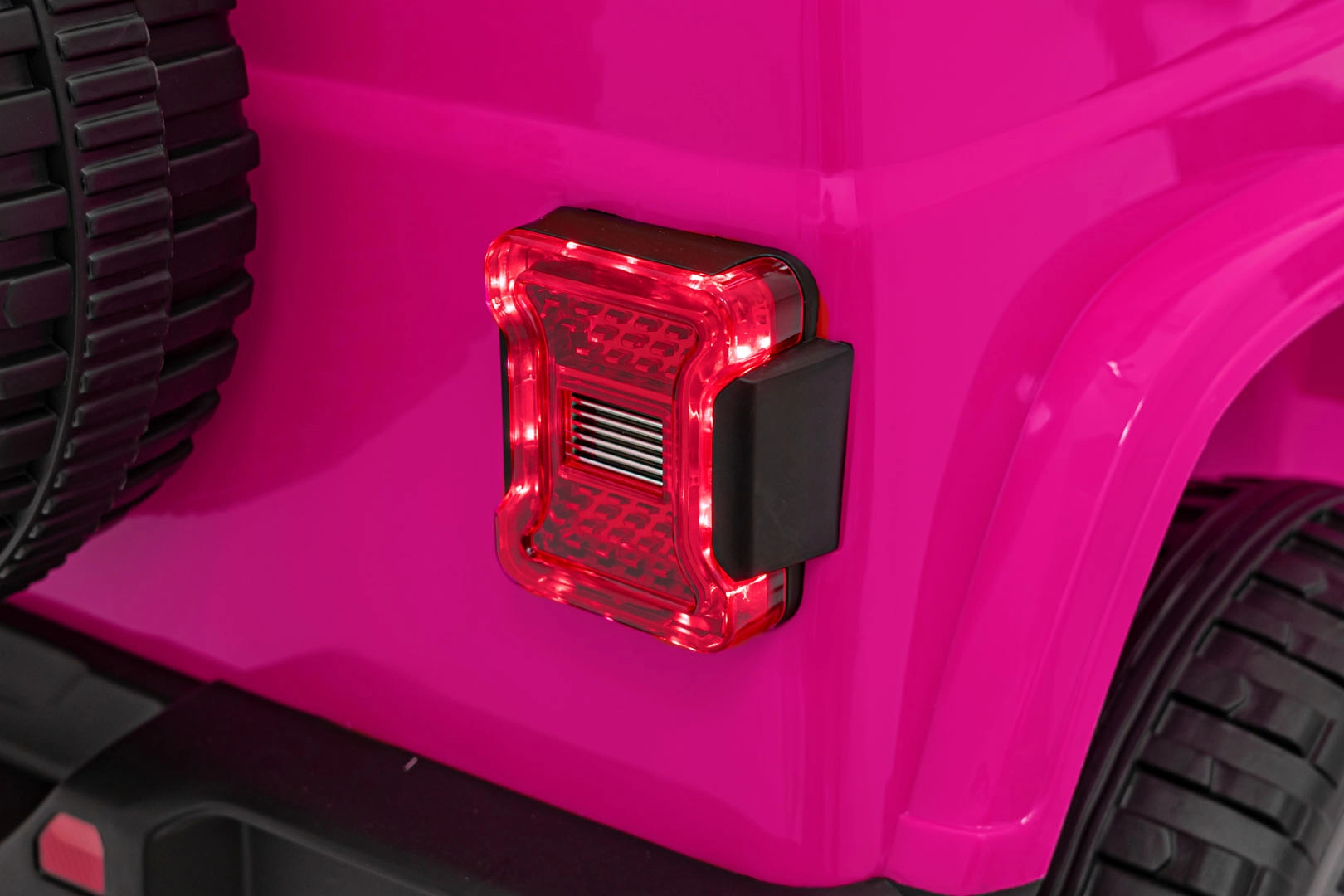 De roze elektrische Jeep Wrangler Rubicon is een perfecte keuze voor kleine bestuurders die van avontuur houden. Dankzij de 4×45 W aandrijving en de soepele start biedt hij comfortabel en veilig rijden vooruit en achteruit, wat zowel kinderen als ouders waarderen. EVA-schuimbanden met grof profiel en achterdempers zorgen voor stabiliteit op diverse ondergronden, terwijl LED-verlichting voor en op de lichtbalk voor een realistische offroad-look zorgt.