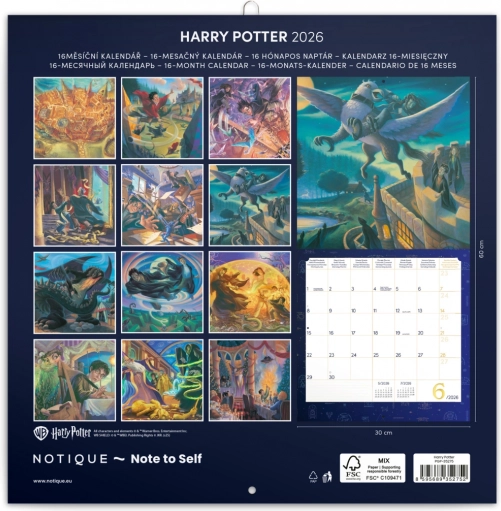 Geniet van een magisch jaar met de notitiekalender Harry Potter 2026! Deze kalender is versierd met twaalf foto’s van geliefde helden uit de tovenaarswereld.