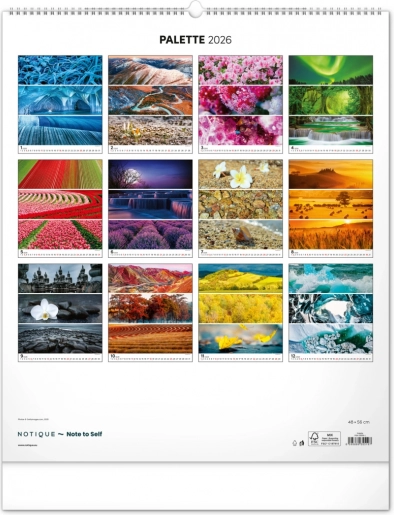 De wandkalender Palet 2026 neemt je mee naar alle hoeken van de wereld met adembenemende beelden. Geniet van rijke, levendige kleuren die opvallen dankzij het zware papier.