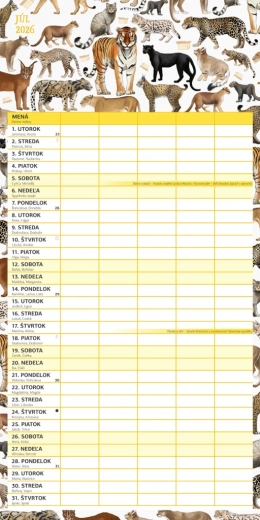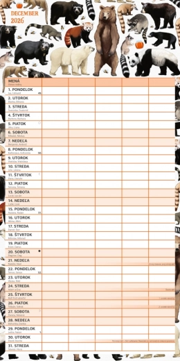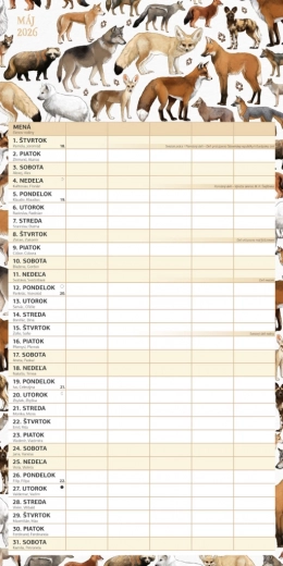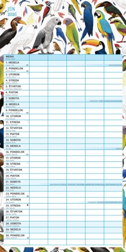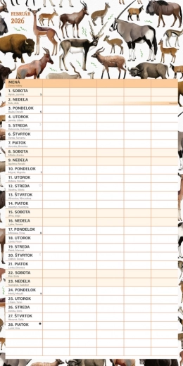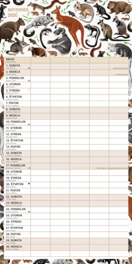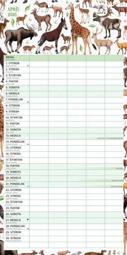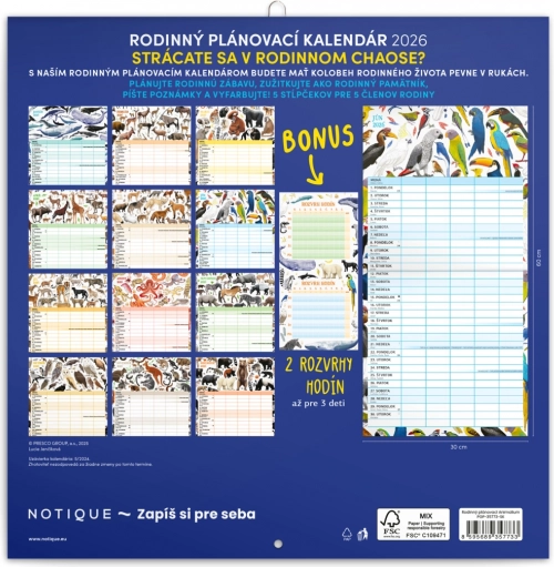 Geniet van plannen met deze prachtige familiekalender Animalium 2026, met een Slowaakse kalenderindeling en ruimte om activiteiten voor maximaal vijf gezinsleden eenvoudig te organiseren.
