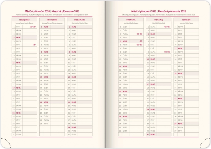 - Inclusief feestdagen van Tsjechië en de Slowaakse Republiek en internationale feestdagen voor een betere oriëntatie.
