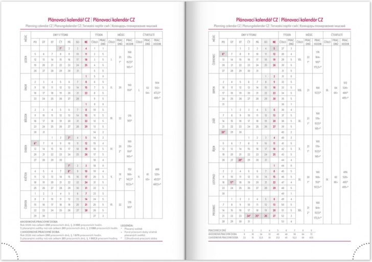 - Inclusief feestdagen van de Tsjechische en Slowaakse republieken en internationale feestdagen