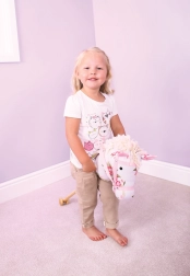 Geniet van uren actieve pret met dit schattige paardje met bloemenpatroon op een houten stok. Ideaal om beweging en lichaamsbeweging te stimuleren wanneer kinderen hun paardje door de speelkamer of tuin leiden.