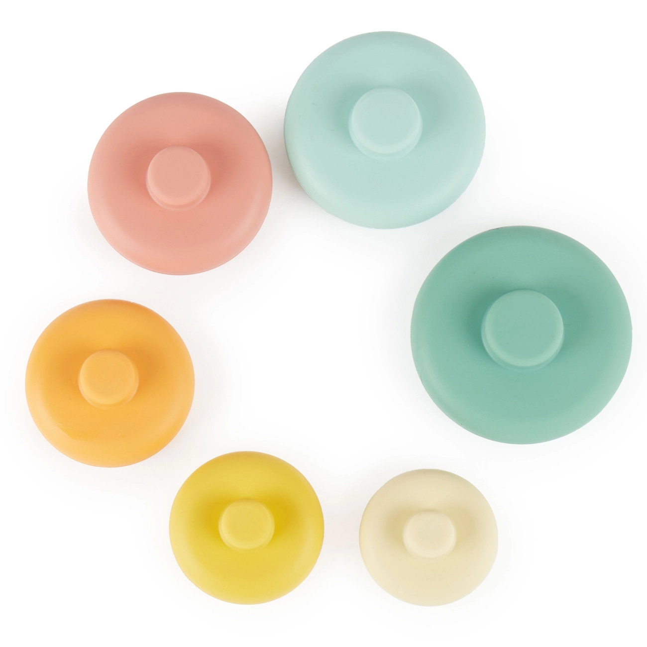 Kreatief speelgoed voor kleine bouwers vanaf 12 maanden. Ondersteun de nieuwsgierigheid van kinderen en hun motorische vaardigheden met deze 6-delige siliconen stapelset, die mogelijkheden biedt voor bouwen, sorteren en kleurontdekking. Ook geschikt als badkamermaatje!