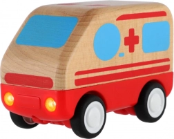 Stijlvolle houten ambulance met vliegwiel die geweldige rijpret biedt voor de allerkleinsten. Geef een zachte duw en de ambulance schiet te hulp – iets wat kinderen enorm leuk vinden.