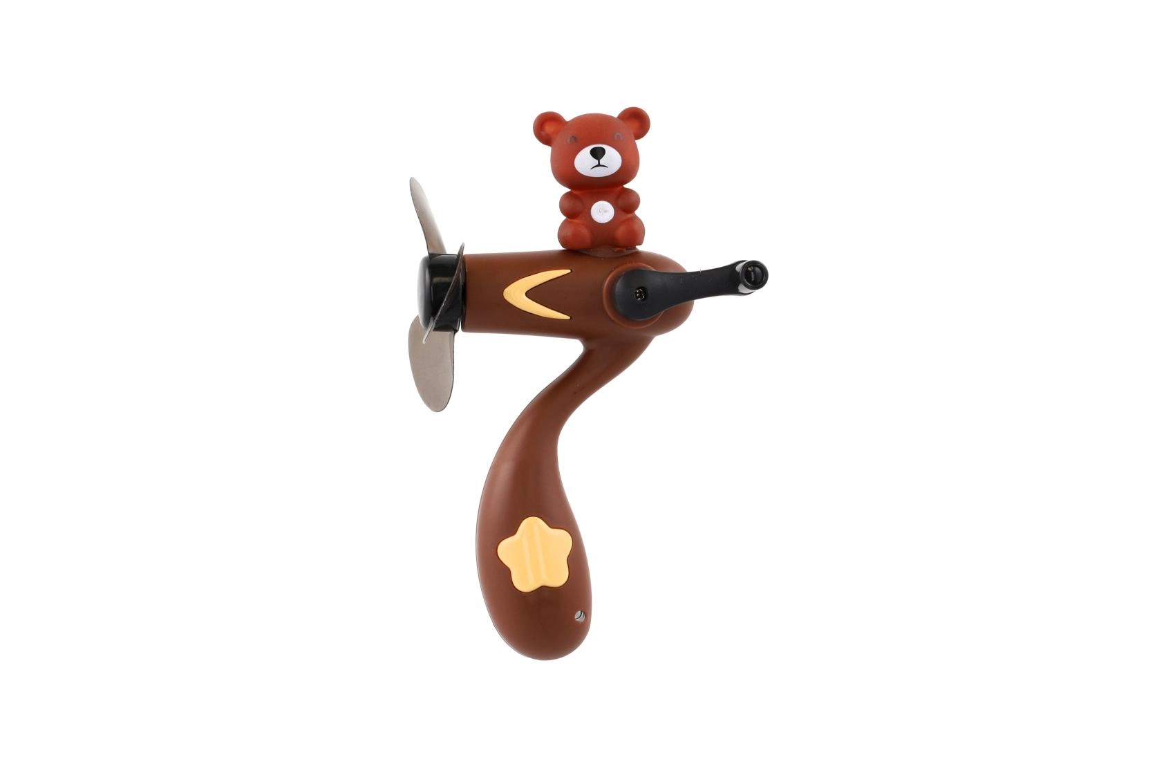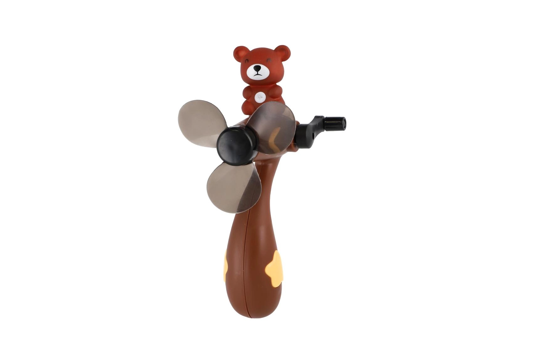 Schattige handventilator met berenmotief die elk kind plezier bezorgt. Draai eenvoudig aan de slinger en de wieken van de propeller beginnen snel te draaien. Ideaal als klein cadeautje of als extraatje voor buitenspelen.