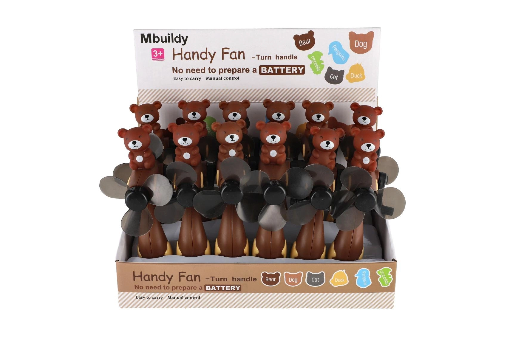 Verras je kinderen met een handventilator met slinger met berenmotief die hun aandacht trekt en ze urenlang vermaakt.