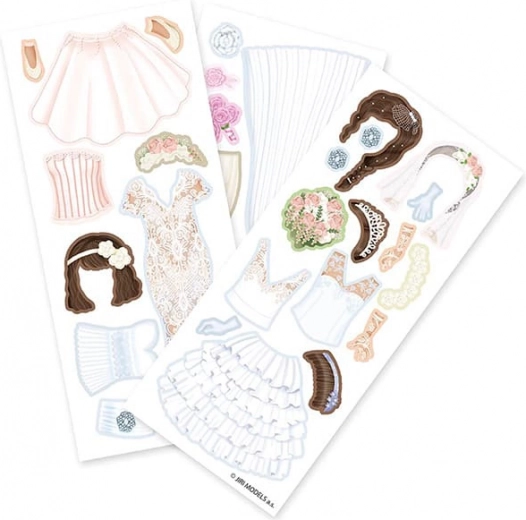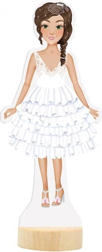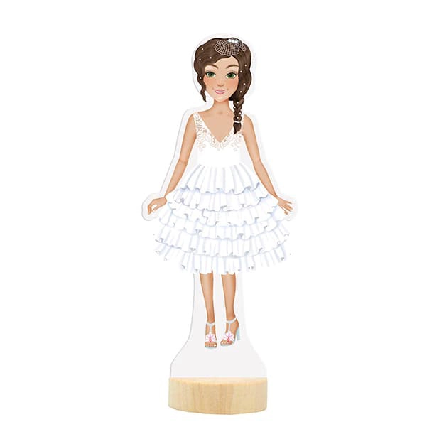 Magnetische Pop Bruiloft brengt plezier en creativiteit naar de kinderkamer. Met deze pop kunnen kinderen hun figuurtje aankleden in verschillende outfits dankzij drie vellen met magnetische kledingstukken, schoenen en accessoires.