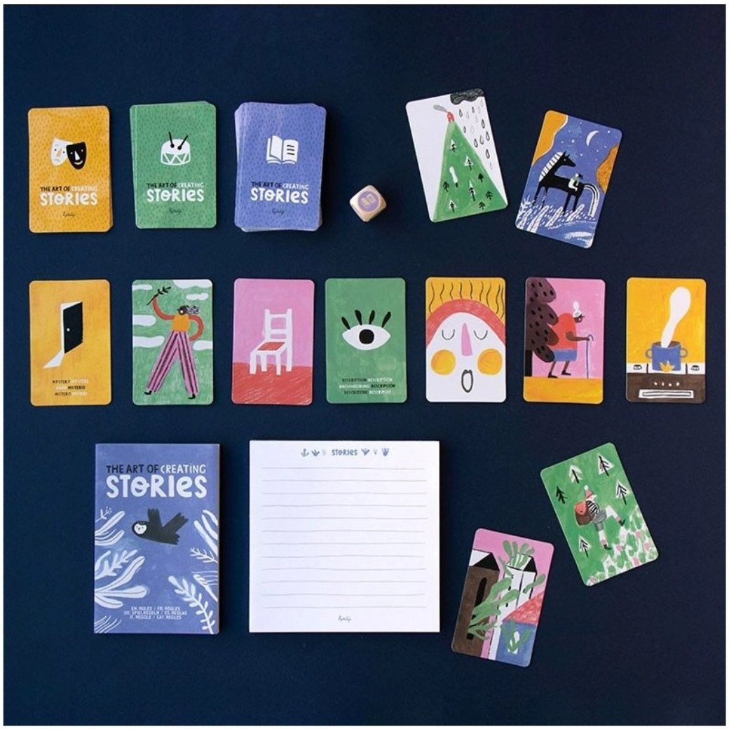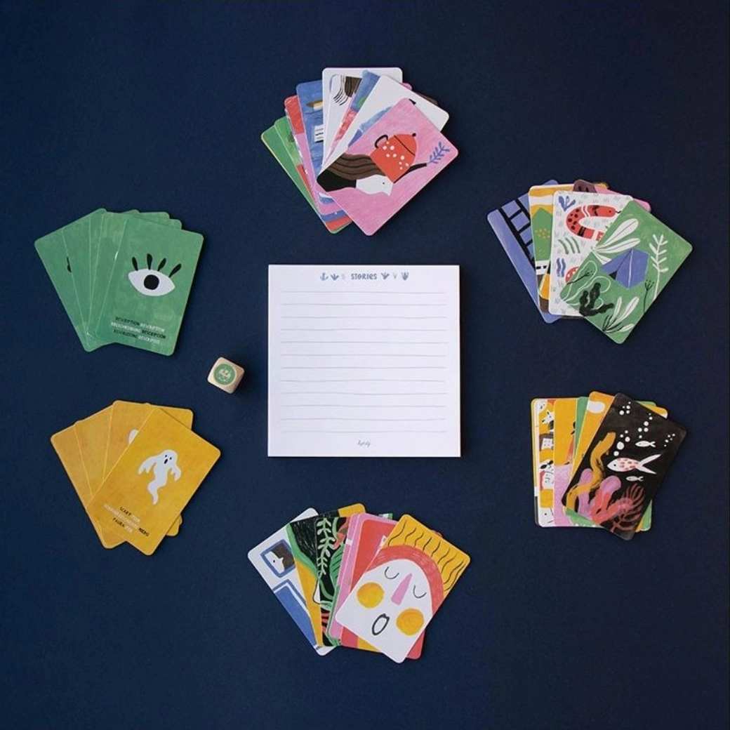 Het Londji kaartspel Verhalen is een geweldige manier om gezamenlijk verhalen te creëren en te vertellen. Spelers gebruiken kaarten met illustraties om boeiende verhalen te maken. Het spel is verdeeld in drie kaartblokken: verhalen, ritmes en genres. Elke speler krijgt een blad en op basis van de worp met de dobbelsteen worden kaarten omgedraaid om het verhaal te vormen.