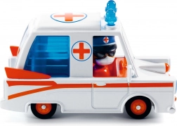 DJeco Crazy Motors ambulance is een geweldige aanvulling op je voertuigenverzameling. Gemaakt van sterk metaal en uitgerust met een figuurtje met een draaibare kop, goed voor uren speelplezier voor kinderen.