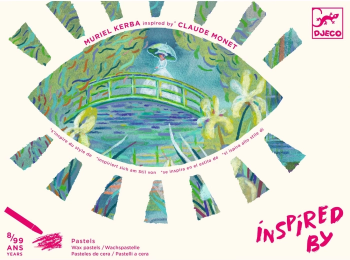 Met deze creatieve set van DJECO kun je de magie van het impressionisme ontdekken en je eigen kunstwerk maken in de stijl van de beroemde schilder Monet. De set bevat: