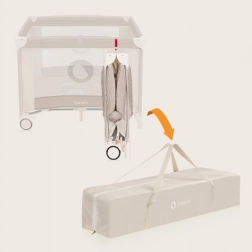 De box is ook uitgerust met een comfortabele T25-schuimmatras en 2 wieltjes met rem voor eenvoudig verplaatsen. Een praktische transporttas is inbegrepen, wat het hanteren en opbergen vergemakkelijkt.