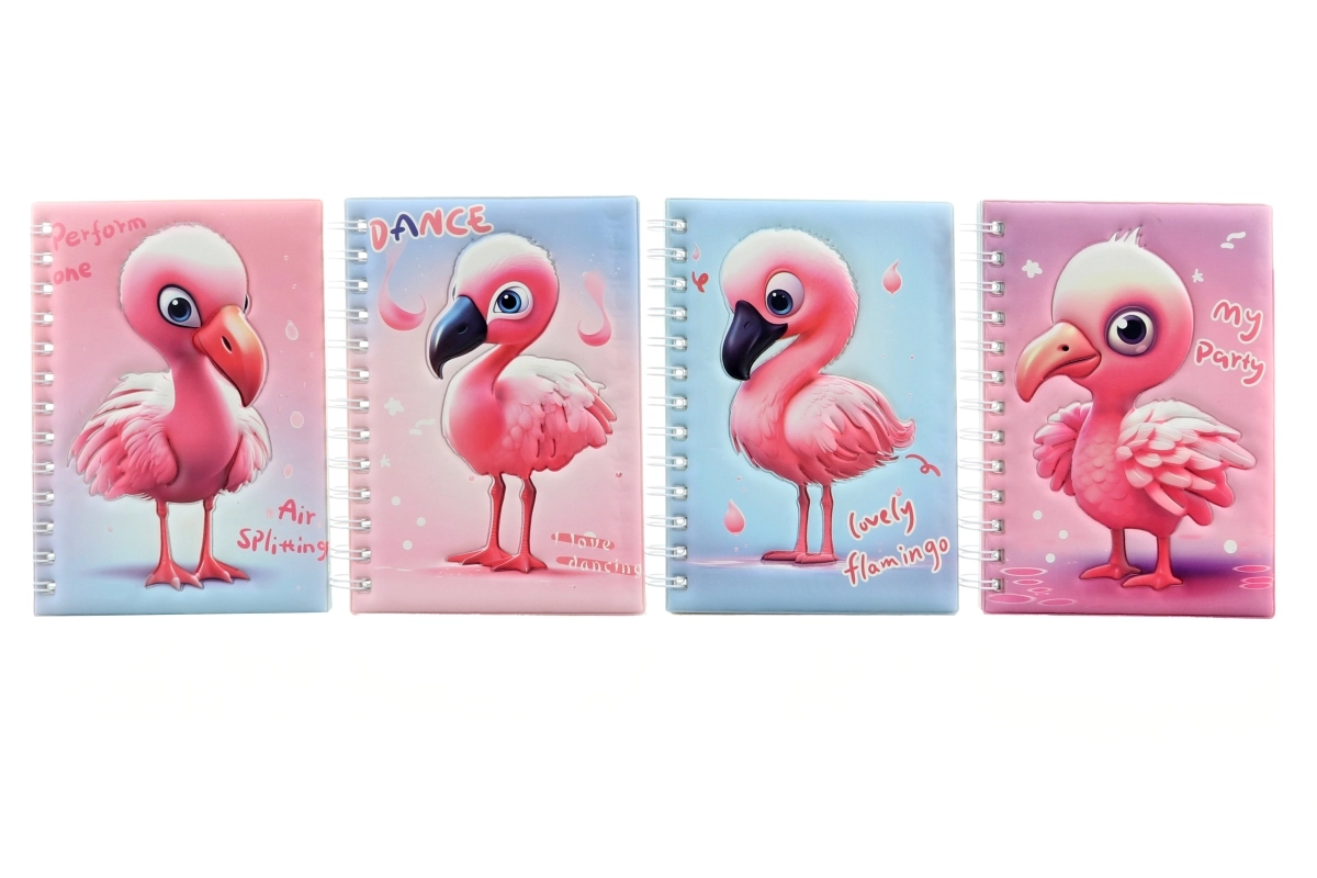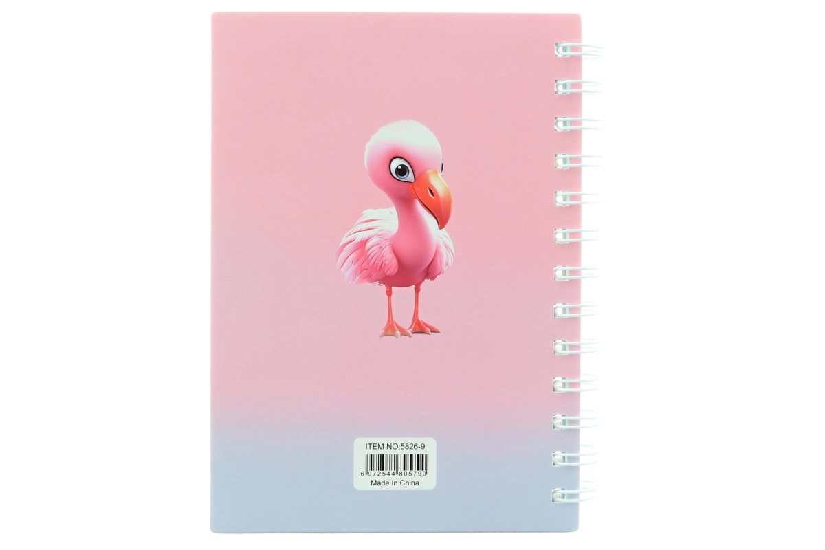 Dit spiraalgebonden notitieboek met een aantrekkelijk flamingomotief is ideaal voor dagelijks gebruik. De voorkant is gewatteerd en gevormd, wat zowel duurzaamheid als een esthetische uitstraling garandeert.