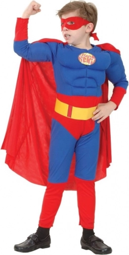 - Inhoud verpakking: jumpsuit met spieren, riem, masker en cape voor een authentieke superheldenlook.