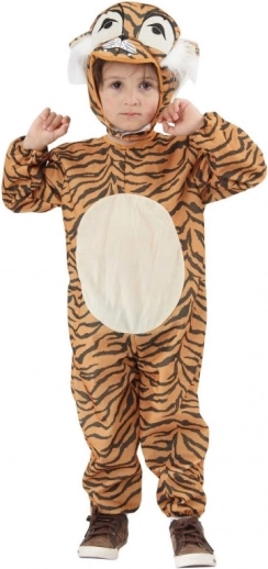 Schattig carnavalskostuum Tijgertje voor kinderen. Ideaal voor kinderactiviteiten. Maat 92-104 cm. Bevat een overall, capuchon en staart.