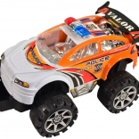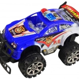 Politieterreinwagen, de ideale speelgoedauto voor kleine avonturiers. Valt op door het kunststof materiaal en de grote wielen die ook oneffen terrein aankunnen.