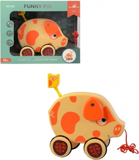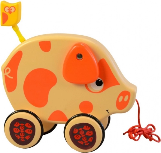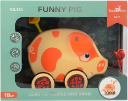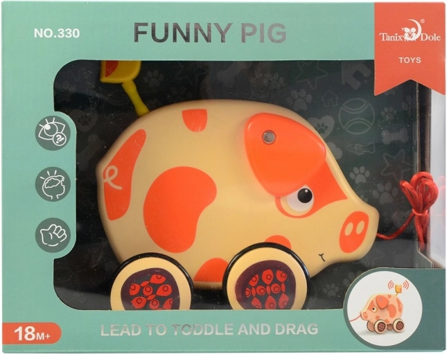 Varkentje aan een touwtje is een leuk speelgoed voor kinderen dat veel plezier biedt. Trek gewoon aan het touwtje en het varkentje zal volgen, terwijl het spel tot leven komt met vrolijk kwispelende staart.