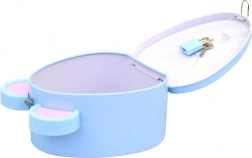 De spaarpot is gemaakt van kunststof en metaal, wat zorgt voor duurzaamheid en een lange levensduur. Hij is verkrijgbaar in drie kleurvarianten, waardoor hij geschikt is voor elke kleine schatbewaarder.