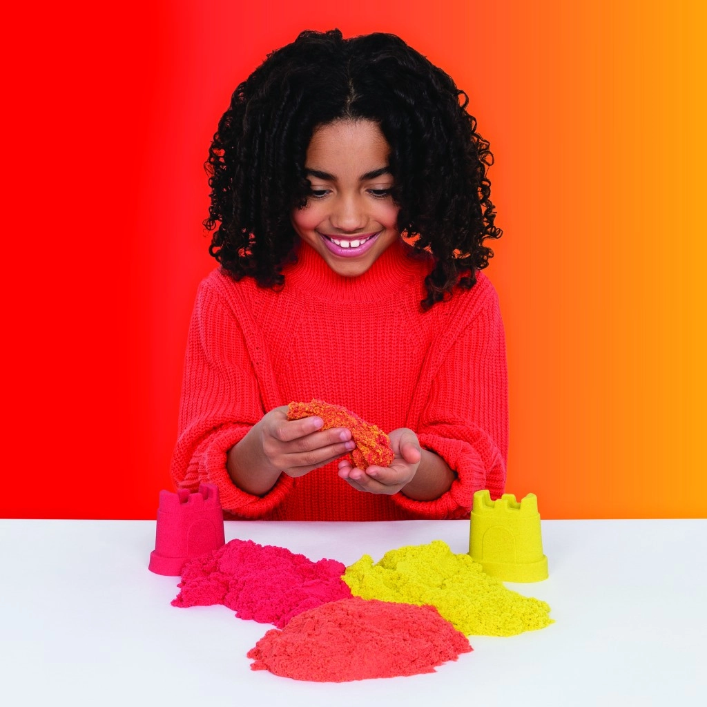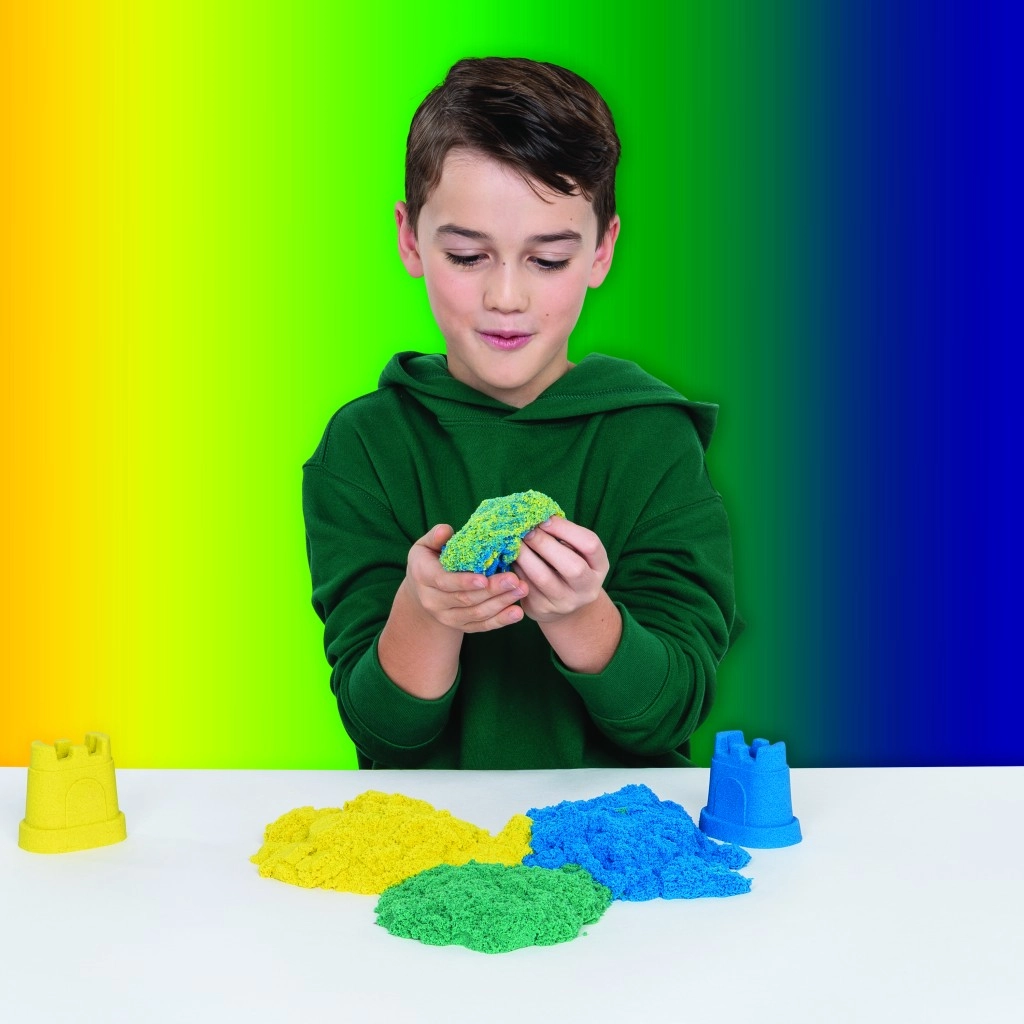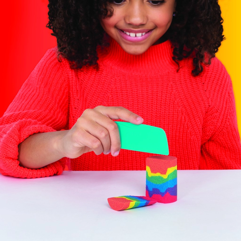 Deze set combineert het iconische Kinetic Sand met praktische tools voor snijden, mengen en vormen. Maak realistische regenbogen, stapel kleuren en bouw kleurrijke kastelen – het zand behoudt zijn vorm, plakt niet en voelt prettig aan.