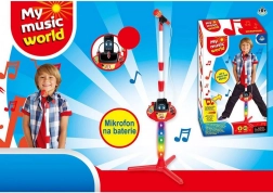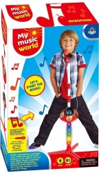 Geweldig plezier voor kleine zangers: kindermicrofoon op batterijen met de mogelijkheid om externe audiotoestellen aan te sluiten en knipperende lampjes op de standaard voor extra fun.
