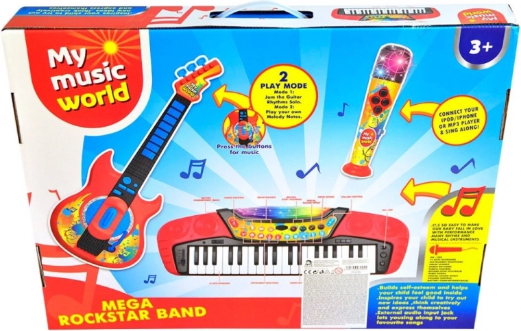 Deze multifunctionele set is de perfecte keuze voor kinderen die van muziek houden en kleine rocksterren willen worden. De set bevat: