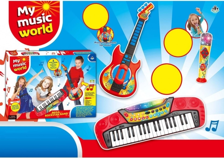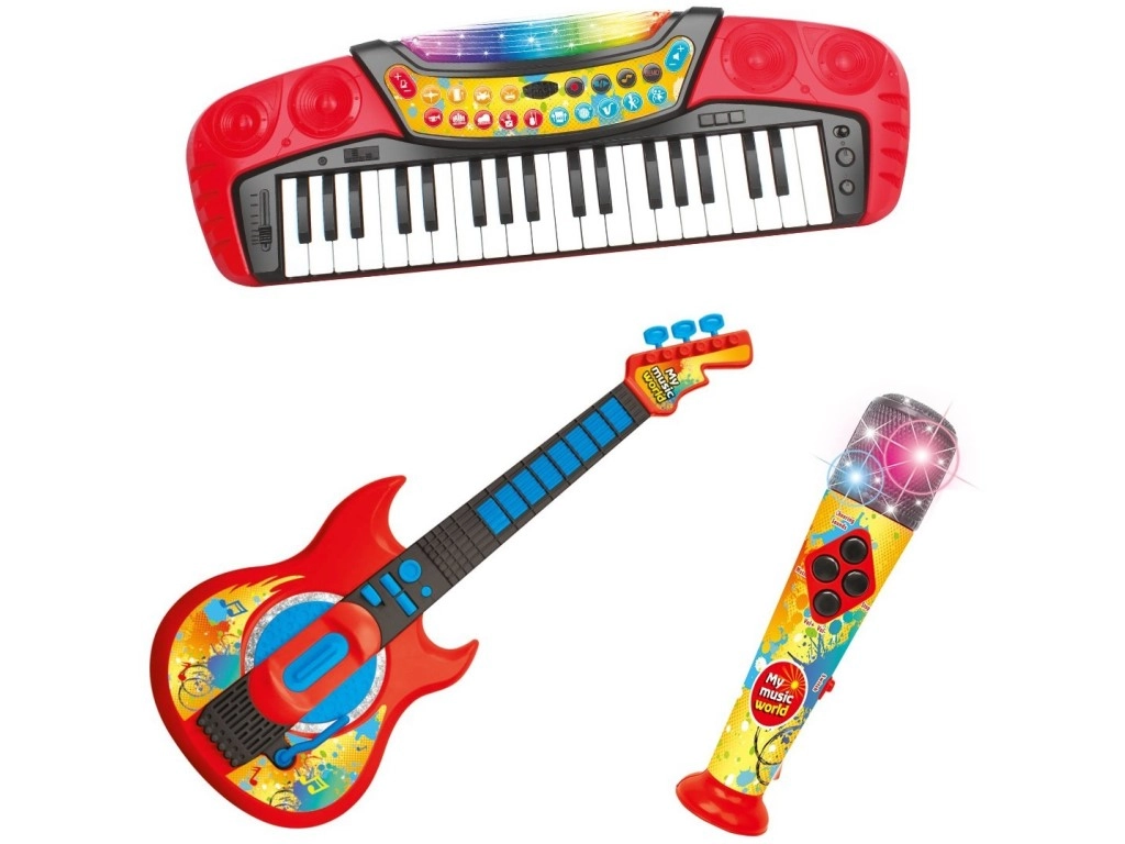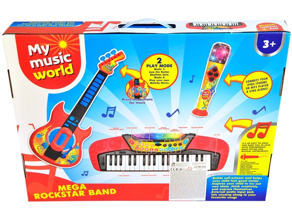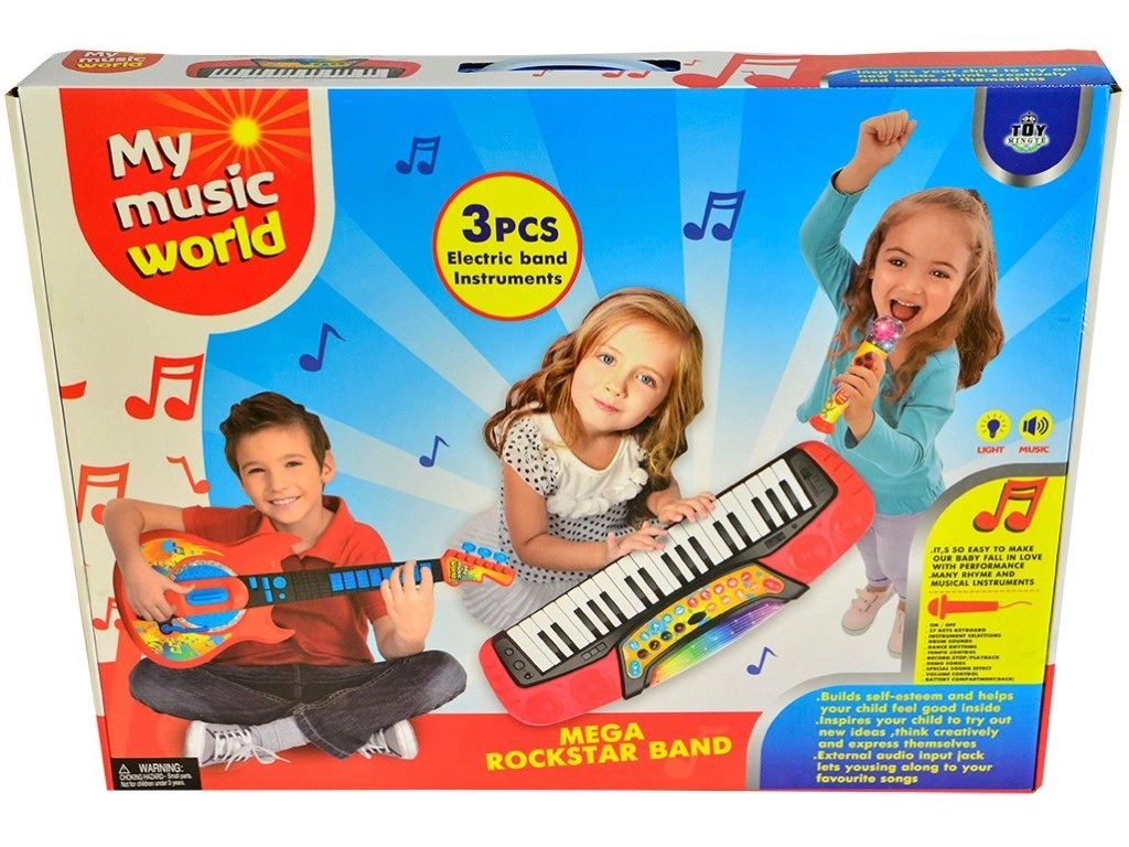 Superleuke en interactieve 3-in-1 set met een elektronische piano met 37 toetsen, een gitaar en een microfoon. Ideaal voor kleine muzikanten!