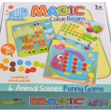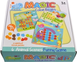 Mozaïek met gekleurde sjablonen ideaal voor creatieve kinderen. Bevat 6 verschillende omgevingen waar dieren leven. Kinderen kunnen de lichamen van de dieren aanvullen met kleurrijke hoedjes.