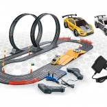 Je hoeft alleen de baan in elkaar te zetten, de adapter aan te sluiten en racen maar! Wie van jullie wordt de snelste coureur? Deze racebaan is een geweldige manier om tijd door te brengen met familie of vrienden.