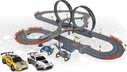 Probeer de racebaan die ideaal is voor zowel kleine als grote coureurs. Inclusief twee auto's en twee controllers, zodat je met z'n tweeën kunt racen. Loopings met brug en andere accessoires garanderen dynamische en competitieve ritten.