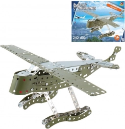 Bouwset Kleine Mechanicus - Vliegtuig, met 242 onderdelen, biedt kinderen de mogelijkheid om creativiteit en fijne motoriek te ontwikkelen. Deze speelset combineert metalen en kunststof onderdelen die met schroefjes en moertjes worden verbonden.