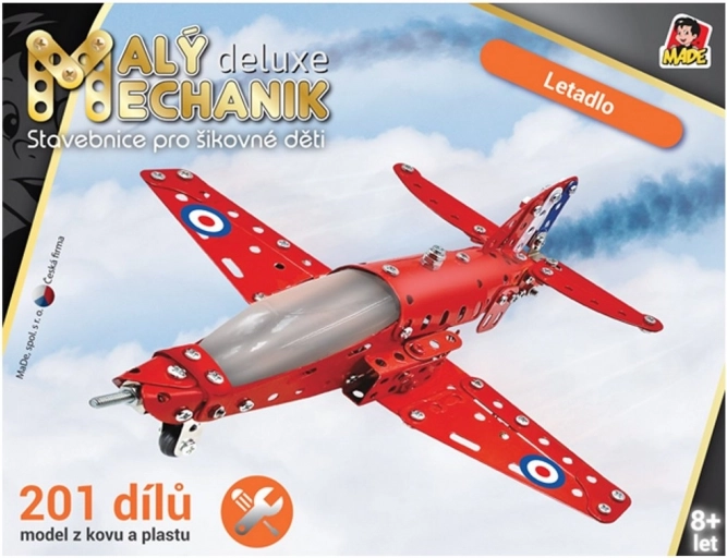 Bouwset Kleine Mechanicus vliegtuig is een geweldige speelset voor creatieve kinderen, waarmee ze modellen kunnen bouwen van 201 onderdelen, waarbij metalen en kunststof delen met schroefjes en moertjes worden verbonden.